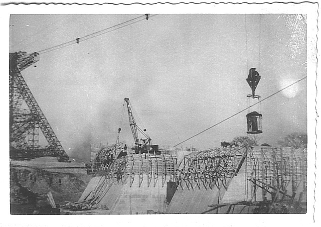 Io ero addetto alla supervisione della costruzione della diga in calcestruzzo. Questo veniva preparato nell'impianto di betonaggio e arrivava con delle autobetoniere che scaricavano nelle benne di 5 mc, sospese alle funi del blondin.