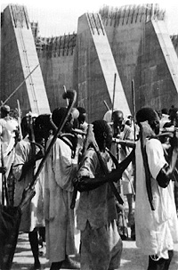 Erano i primi anni della guerra civile tra nord e sud del Sudan, tra mussulmani e cristiani. Un giorno si sparse la voce che i guerriglieri stavano raggiungendo il cantiere. Io dovevo iniziare il turno di notte. Mi dissero che in caso di pericolo dovevamo salire tutti al coronamento, nella parte di diga ultimata, e togliere le scale a pioli per isolarci. Durante tutta la notte sentimmo un suono di tam-tam sempre pių vicino. Passammo tutta la notte in angoscia appollaiati sulla diga, ma fortunatamente non successe nulla.